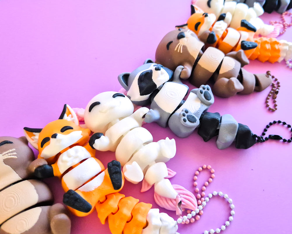 They are all printed with a small hole in their tails & come with a chain to match - they're a great size for Bag Charms!