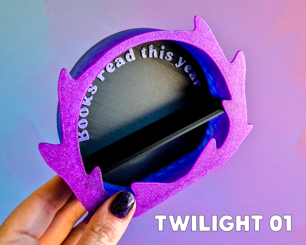- Twilight 01: Sparkling Purple to navy gradient with matte black back & sparkly purple text