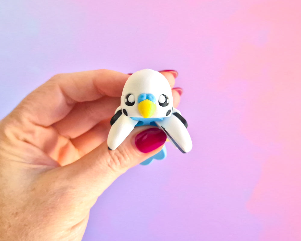 These sweet parakeet are approx 7.5cm long & are a single piece with flexible parts. While we don't recommend feeding them seeds, they do love staring in the mirror & singing to themselves to pass the time.