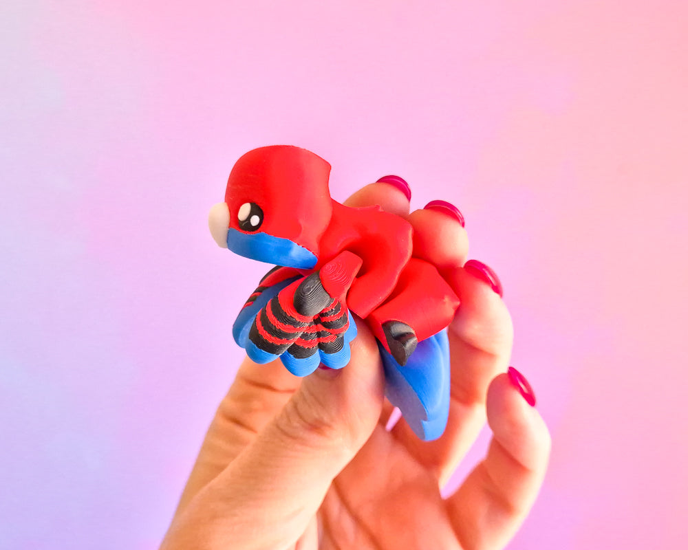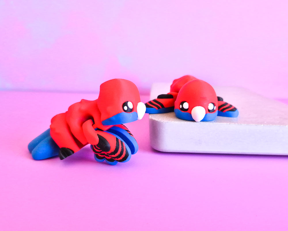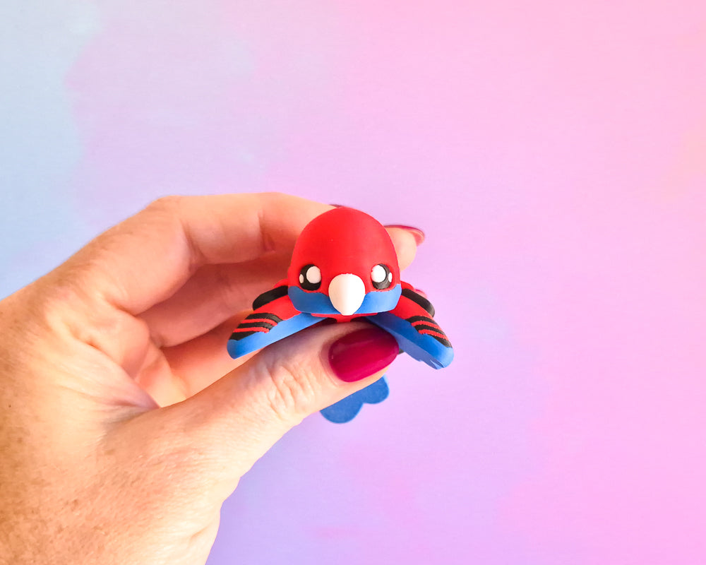 The sweetest lil' Aussie bird! These Crimson Rosellas are are approx 7.5cm long & are a single piece with flexible parts. While we don't recommend feeding them seeds, they do love growing sunflowers with you!