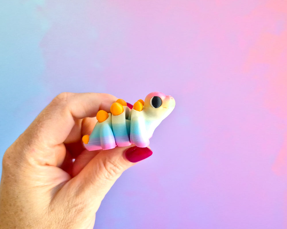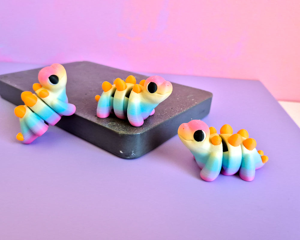 This lil Steggo's are all approx 6cm long & are a single piece with flexible parts.