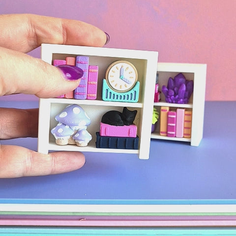 The Bookshelf is approx 6cm tall & 6.5cm wide.