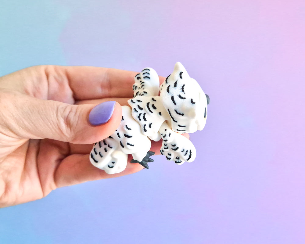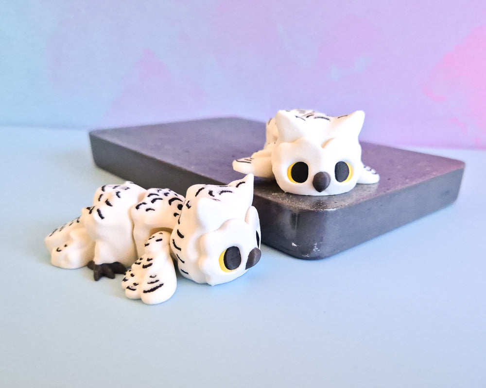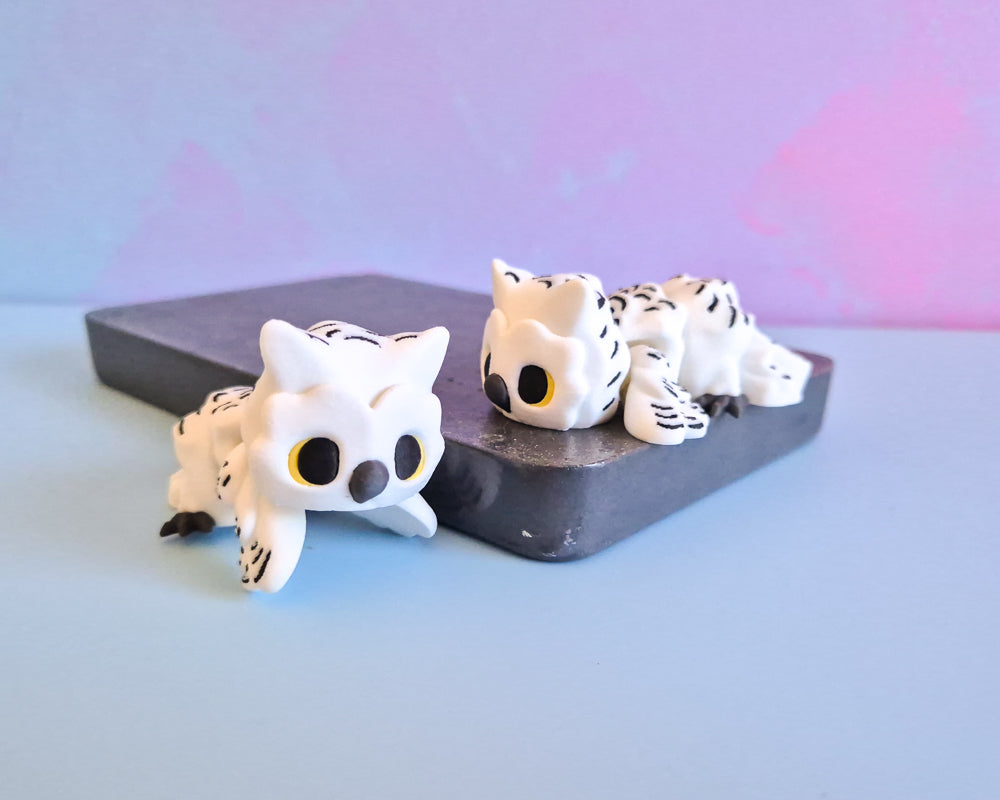 These sweet owls are approx 7.5cm long & are a single piece with flexible parts. While we don't recommend feeding them mice, they do love posting letters with you!