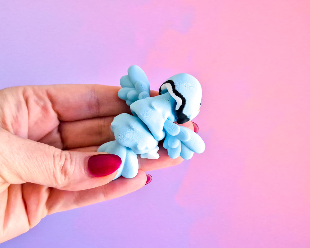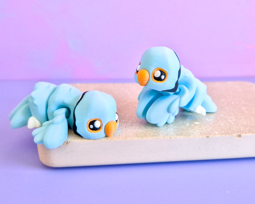 This powder blue cuties are approx 7.5cm long & are a single piece with flexible parts. While we don't recommend feeding them seeds, they do love growing sunflowers with you!