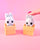 Rabbit in a box Clicker are approx 7.5cm tall, the box is a soft peach.