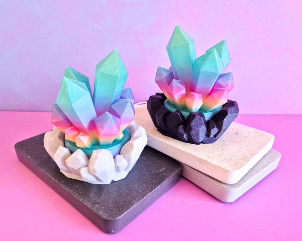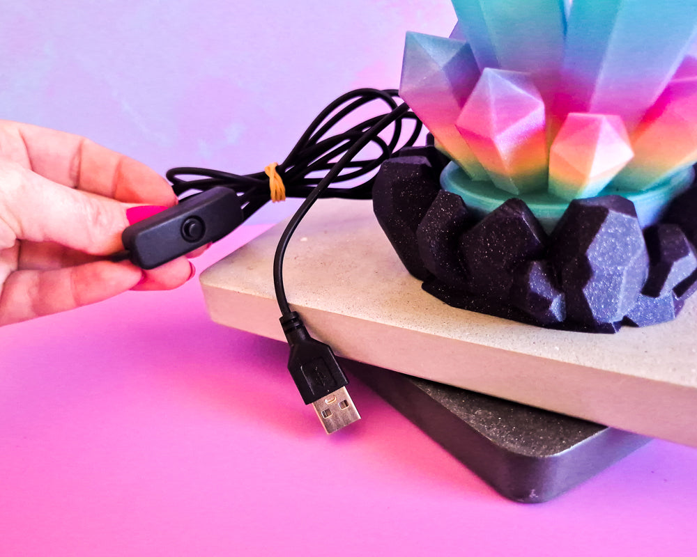 This stunning crystal lamp is most magical when it's lit up at night! The hollow crystals glow with the embedded LED lamp.