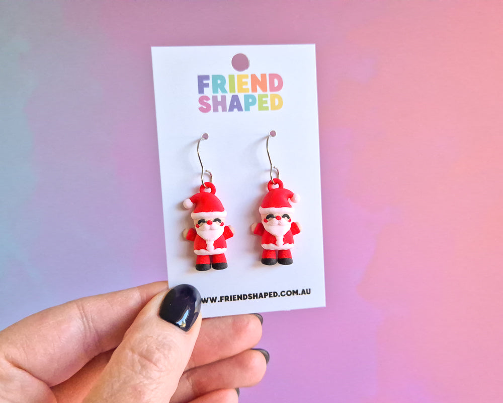 Would you look at that, the santas just got TINY and WEARABLE! These lil' dudes are printed scaled farrr down, we recommend showing every person that passes your cute as heck earrings.