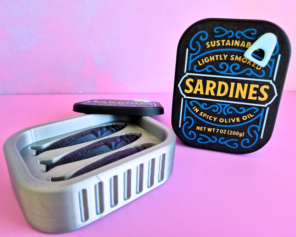 The Sardine Tin is approx 11.5cm long, 9cm wide & 3.5cm tall.