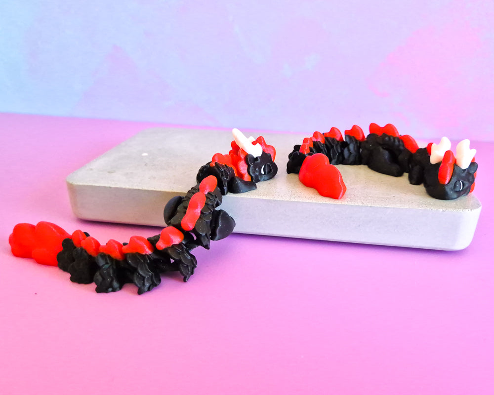 These Small Dragons are a glitter black with sparkling red accents.