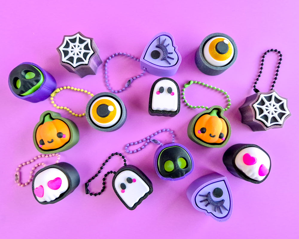 Clickers! It's impossible not to give them a press! These fidgets have a mechanical keyboard switch embedded in them & make such a satisfying click when pressed. I challenge you not to boop them every time you walk past.