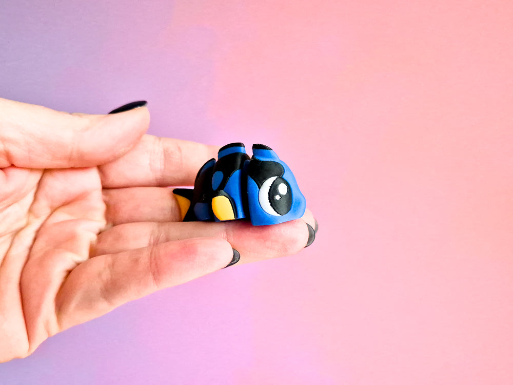 These lil' Dory fish are are approx 5cm long & are a single piece with flexible parts. While we don't recommend returning them to the ocean, we 100% recommend watching Finding Nemo with them