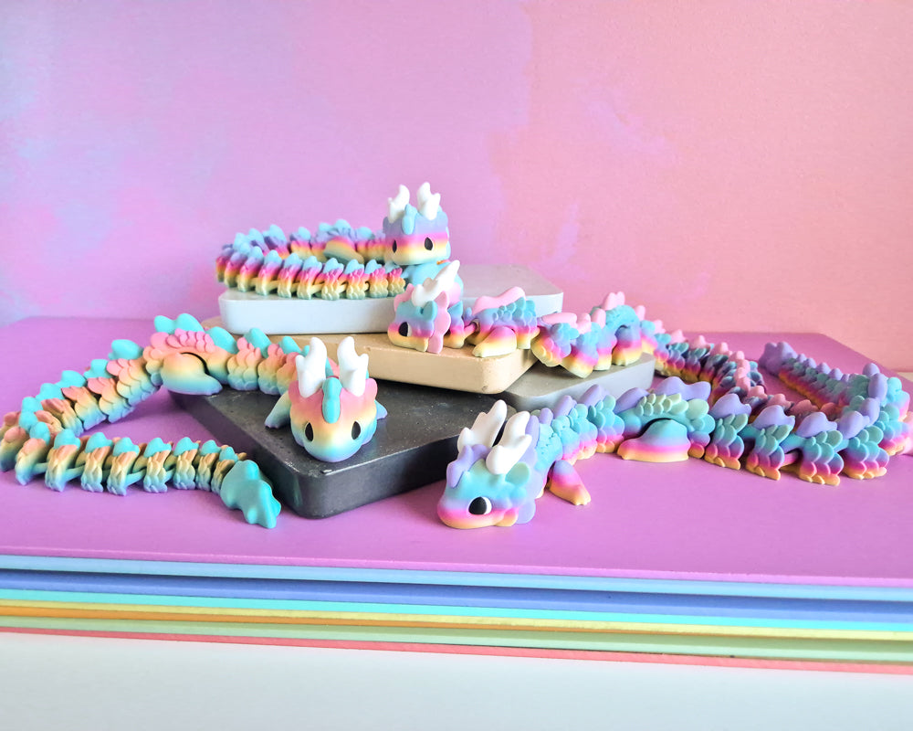 These Extra Long Dragons are each a pastel rainbow with different pastel accents. They're a limited run - I don't often get the printers free long enough to dedicate to these looooong sweeties. If you're in love, snaffle one up asap.